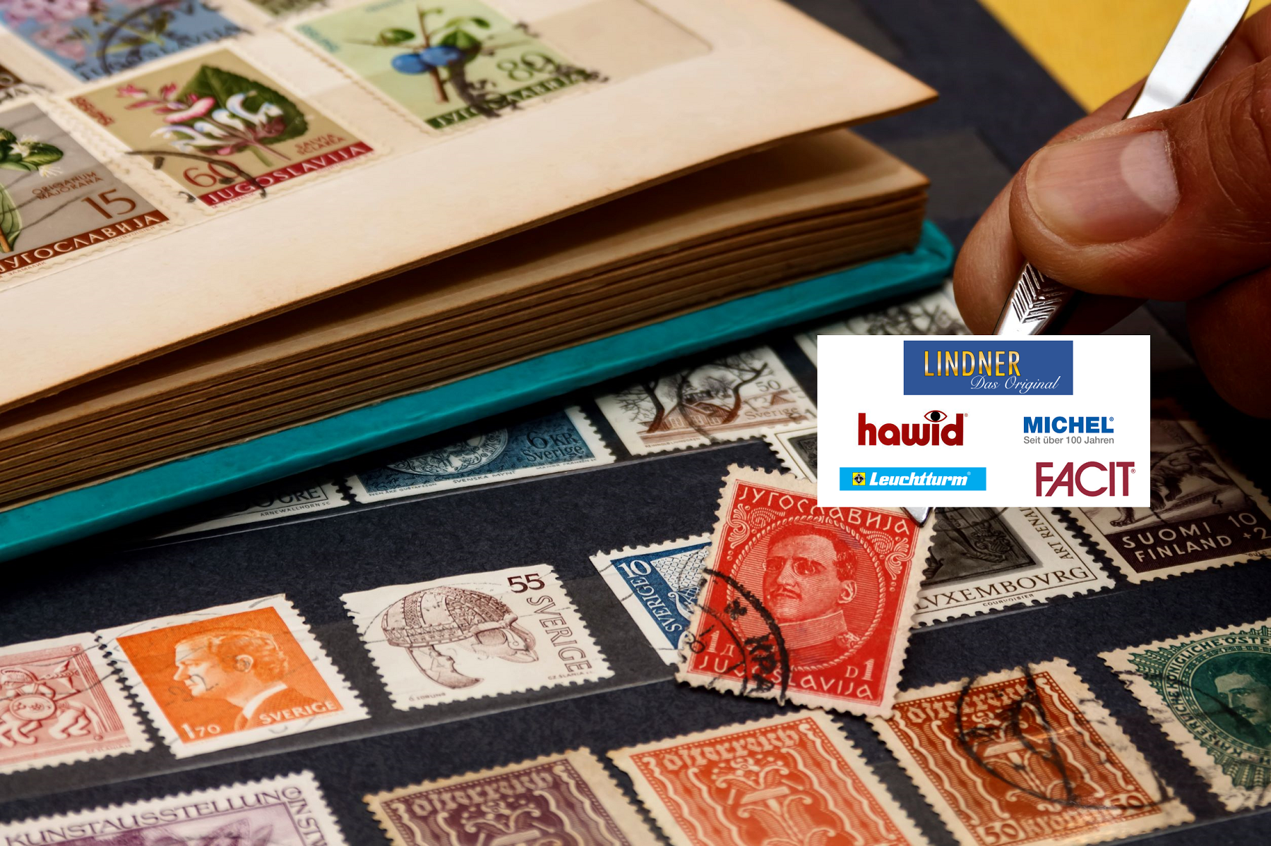 Klistermærker til frimærkeindsamling. Pakke med 10 ark klistermærker.