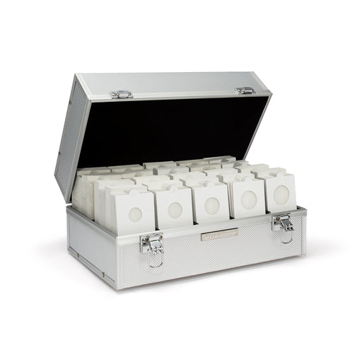 LeuchtturmEn aftagelig bakke med plads til 12 Quadrum-møntkapsler gør Mazzola-præsentationskufferten til en perfekt løsning til alle møntserier. Æsken lev...