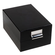 Sort arkivboks til postkort, breve, kartotekskort, møntsæt, pengesedler og meget mere op til formatet 170 x 120 mm (DIN C6). Fleksibelt interiør med 3 aftagelige skillevægge. Den høje stabilitet giver varig beskyttelse. Metalhåndtag med etiketvindue til identifikation af indhold. Moderne design. Kapacitet: cirka 700 postkort. Udvendigt format: 180 x 126 x 270 mm